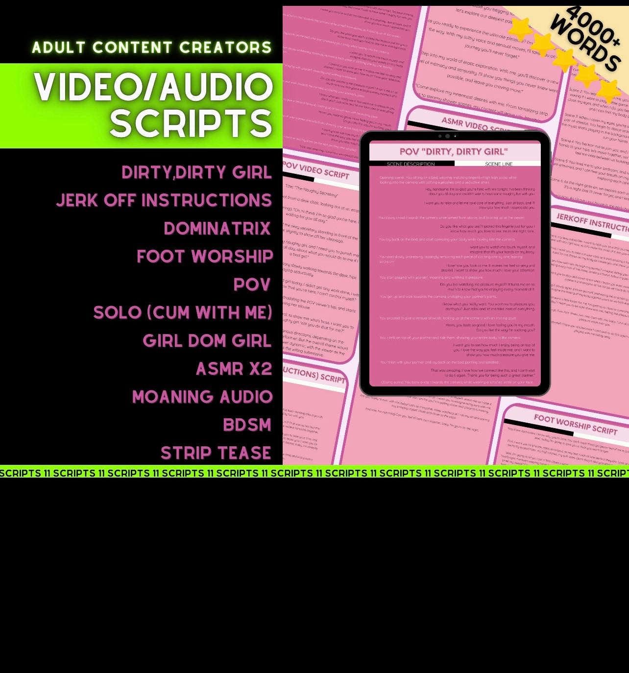 NSFW Scripts, tip menu templates, sexting guides, content ideas, poses and much more.